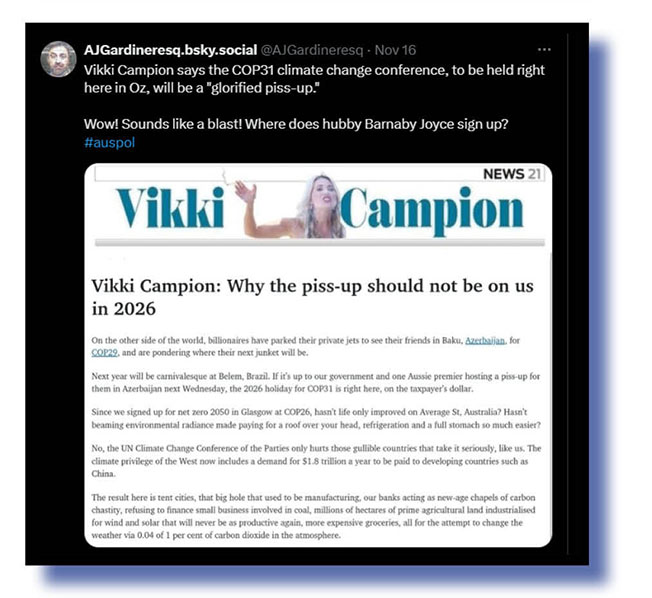 On domestic mainstream mediocre matters now and we’ll give AJGGardinersq.bsky.social two bites of the cherry as he pokes fun at Vikki Campion and her current husband and how the Murdoch shitrag in South Australia – The Advertiser – tried its very best to damage Labor’s chances before Saturday’s state by-election and the much more muted response in its sister Sunday Mail to the big Labor win.