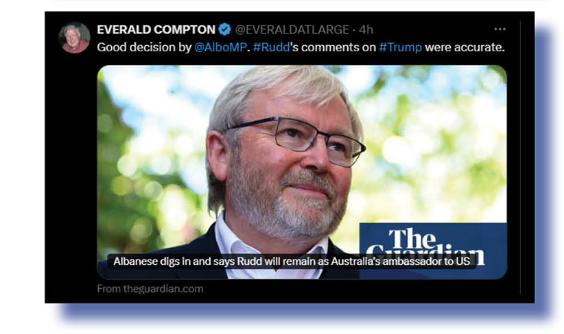 In tomorrow’s second look at our Xcrements -of-the-Week, we’ll cover the faux/feigned brouhaha sparked largely by Newscorpse over whether or not Kevin Rudd should keep his ambassadorship to the US but seeing the words village idiot have just been mentioned above, here’s just a taste on that issue from Everald Compton.