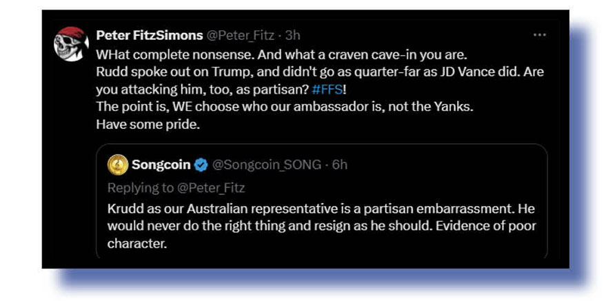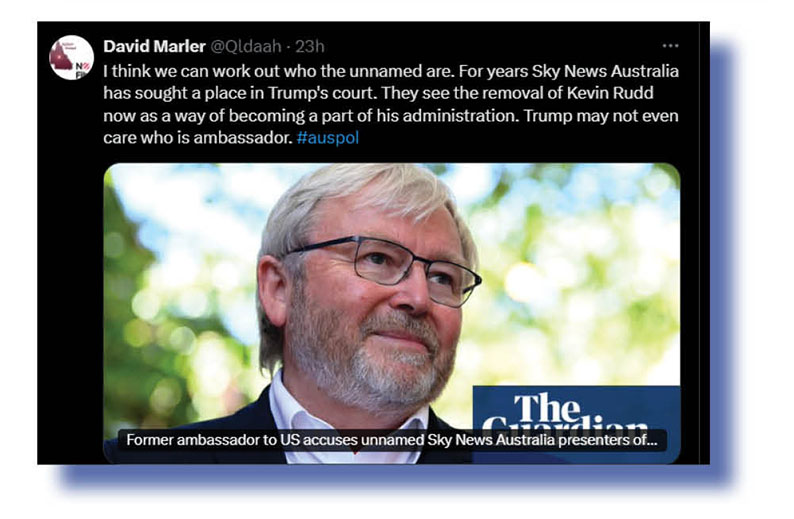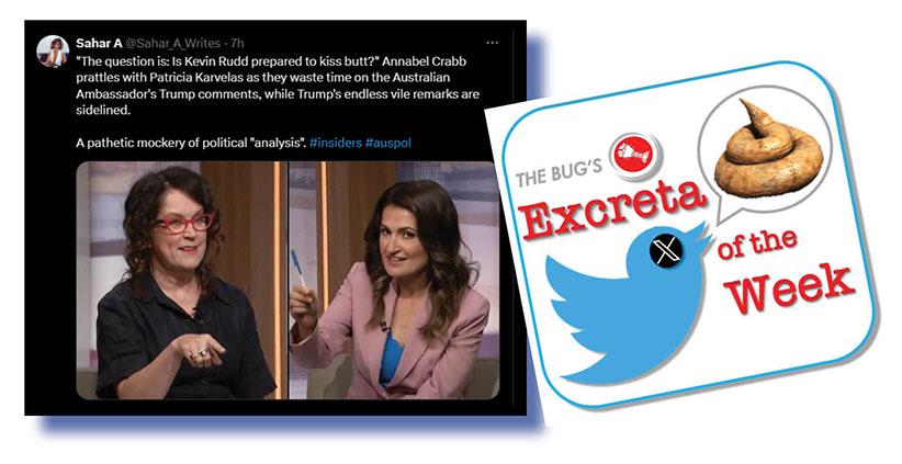 Our judges wanted to give special mention to Sahar A (at top and below) seeing she combined two strands of that story that inspired much Xcrement this past week – the anti-Rudd campaign itself over his past criticisms of Donald Trump and the way the ABC’s Insiders program on Sunday dealt with it.