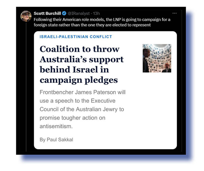 The Bug will stick to its long-held view that criticising Israel’s genocide in Gaza is not being anti-semitic in any way, shape or form, regardless of what Paterson, Dutton and, sadly, Anthony Albanese and Penny Wong might say.