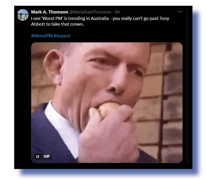 Apropos of nothing, really, The Bug thought it would kick off this second look at our Xcrements-of-the-Week at something that is charting on X at the moment: discussion over who has been this nation’s worst PM ever.