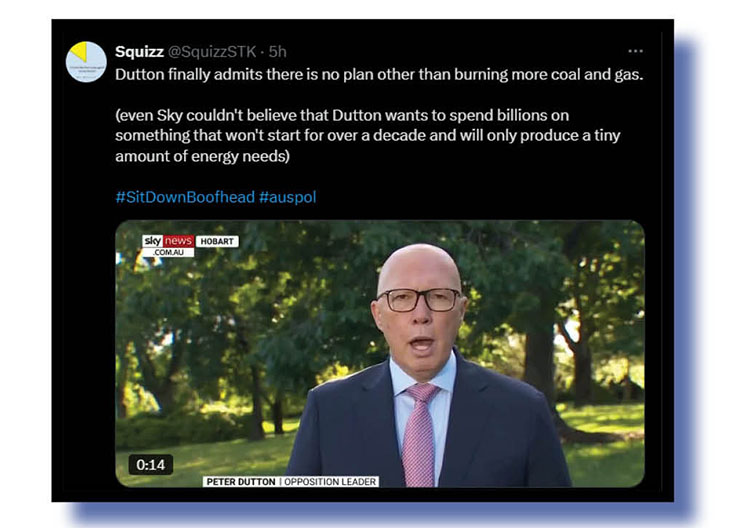 Back to domestic issues now, and Squizz and Miss Polly xcreted on what they saw as Peter Dutton’s lack of policies, a bit like his head hair.