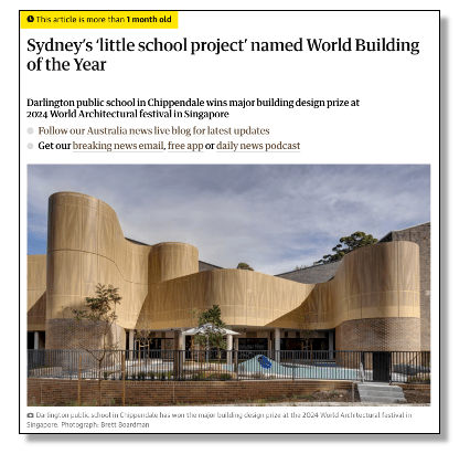 A small public school in Sydney was named last month as World Building of the Year at the 2024 World Architectural Festival in Singapore.