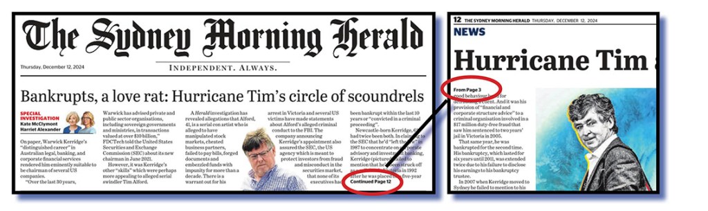 But on that recent night, one sub-editor got it right and the spill on page 12 had come “from page 3”.