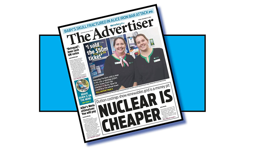Oh, but not the Adelaide Advertiser or any other Newscorpse rags for that matter. It’s a cast-iron fact that Labor’s renewables plan is a money pit. Ditto that the LNP’s nuclear power plant plans are cheaper.