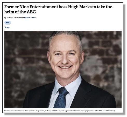 Today I can report that the announcement of former Nine Entertainment boss Hugh Marks (below) as the new managing director of the Australian Broadcasting Corporation has been warmly welcomed by the one entity that really matters – News Crap Australia.