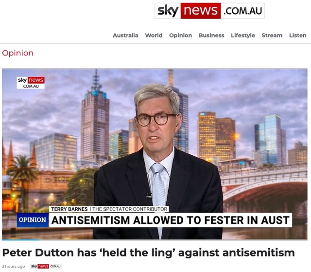 The Spectator chap said Dutton had been “holding the line” against anti-Semitism but Sky’s online report said the Opposition Leader had been “holding the ling”.