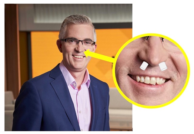 It seems before going to air the show’s host David Speers tipped them off to his practice of wearing discreet nose plugs whenever Sheridan has joined the panel. (below)