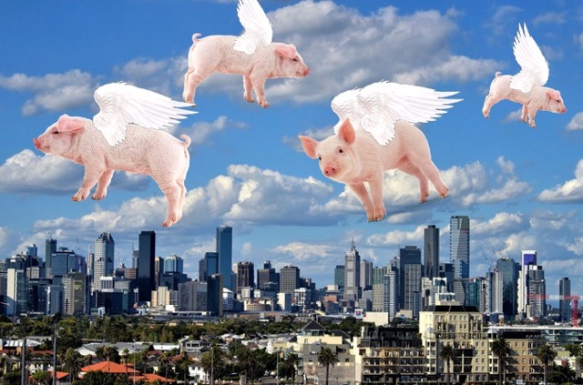 BREAKING NEWS: Federal and state police have urged residents to stay calm following reports of flying pigs filling city skies across Australia. (below) Civil safety authorities say they are urgently investigating the phenomenon and will issue updated bulletins as soon as reliable information comes to hand.