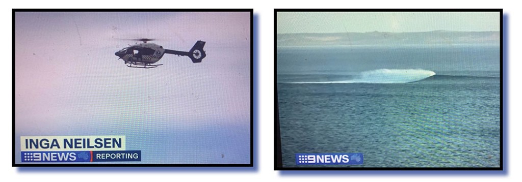 Covering a fatal shark attack in South Australia, she told us that a local surfer had previously warned online that a large and aggressive white shark had been spotted nearby and then came up with this gem: “Despite the concerns, the Granite waves were still heaving….”