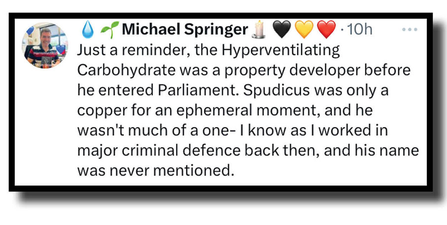 Others got even more personal – our Xcreta judges always like that! – so let’s hear firstly from Michael Springer and Political Tragic, in conversation with bradpsychology, on the astute property investor/business genius and mega money-making abilities that Dutton has always possessed.