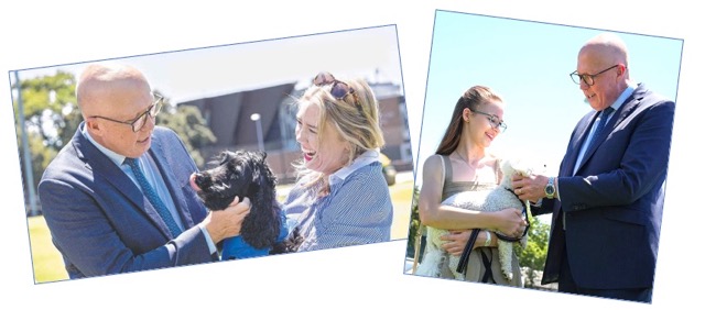 MELBOURNE: Liberal Party campaign staff deny orchestrating dozens of dogs to swarm Opposition Leader Peter Dutton at a city park yesterday in a bid to soften his “hard man” image.