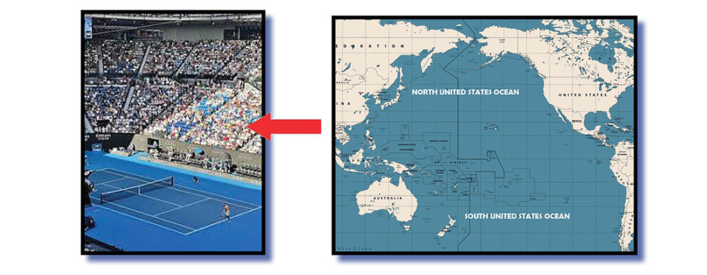 MELBOURNE: An Australian Open spectator (arrowed below) who repeated started “Aussie! Aussie! Aussie! Oi! Oi! Oi!” chants throughout the second day of the tournament was late yesterday bundled outside by a largish group of real tennis fans and beaten to death on Grand Slam Park.