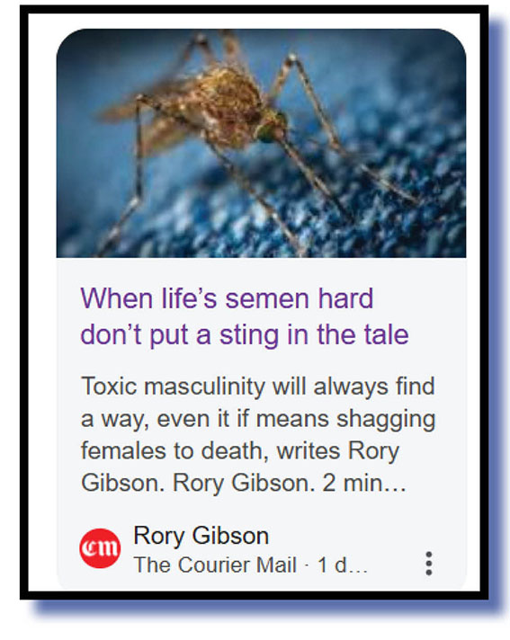 Media Glass House Click-Bait: The Courier-Mail’s online plug for a story supposedly about the loss of masculinity worldwide.
