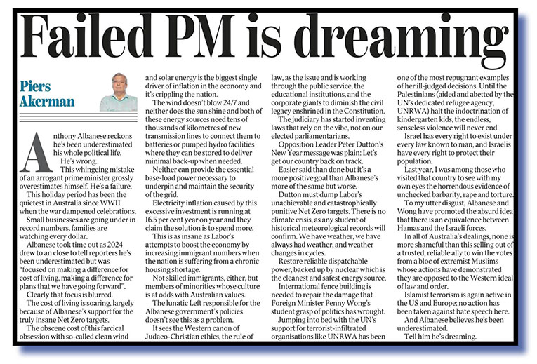 Media Glass House Arselicker! Piers Ackerman’s attack on “this whinging mistake of an arrogant prime minister” Anthony Albanese on behalf of Rupert and Lachlan Murdoch;