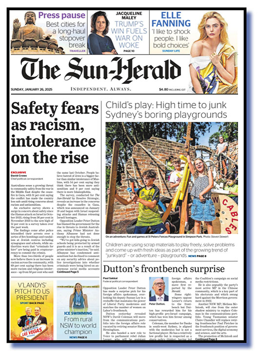 More proof? Today’s splash in The Sun-Herald (right, below) informs us that racism is still on the rise in Oz. And I stupidly thought it maybe had reached its peak. Dutton must be pissing his pants with excitement at this news he is helping create.
