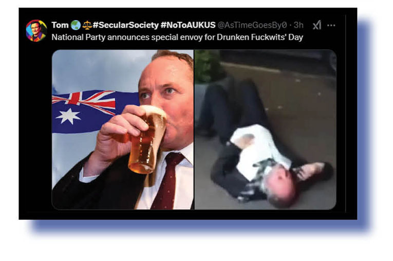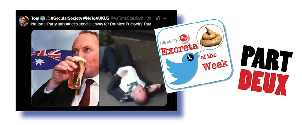 Our Xcrement-of-the-Week judges have of recent times lamented the fact that this column hasn’t taken the piss out of reformed pisspot Barnaby Joyce for quite some time.