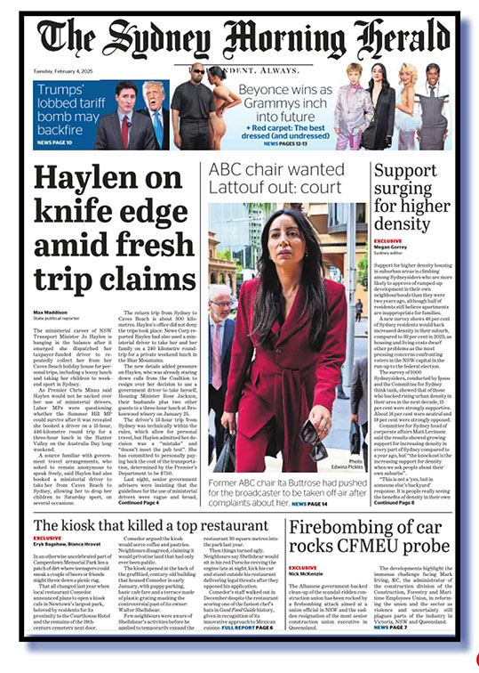 For the umpteenth time – if not the millionth – at least one SMH sub needs to know that no page 3 of any newspaper in newspaper production history has EVER been called THE FRONT PAGE! Except, of course, at Nine Entertainment Co. mastheads.