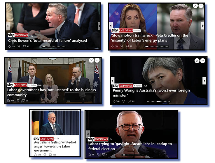 “And that’s just some of the Sky LNPNews items from barely more than 24 hours. We’re talking some of our nation’s most respected and experienced political journalists and commentators here: Andrew Bolt. Sharri Markson, Peta Credlin, Kieran Gilbert, that Murray chap … the list is almost endless.
