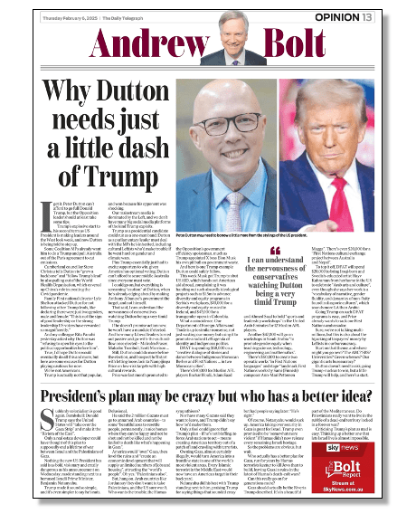Bolt also used his latest column to give out some free advice to Opposition Leader Peter Dutton – be more like Trump. As if that’s possible!