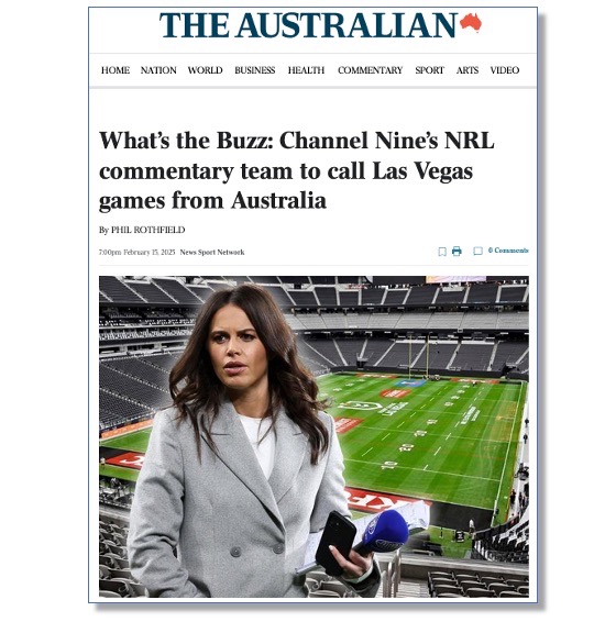 “The trouble started when Gerard read an item by The Daily Telegraph’s veteran rugby league writer, Phil Rothfield, which The Oz ran online (below) revealing that Network Nine will not be sending a commentary team to the NRL’s demonstration games in Las Vegas next month,” a source in The Australian newsroom said on condition of anonymity.