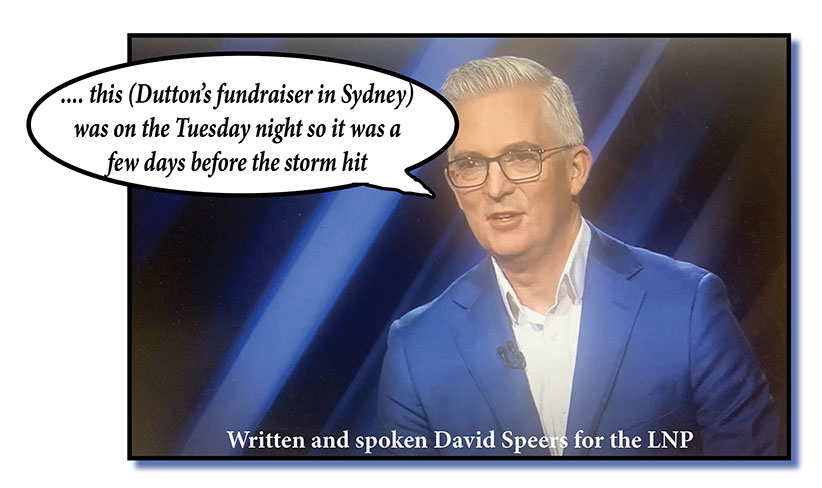 Now if that wasn’t clearly meant to make excuses for Peter Dutton being at a Liberal Party fundraiser, maybe two, in Sydney while his community in his north-of-Brisbane electorate of Dickson were hunkering down or filling sandbags then my nephew is a monkey.