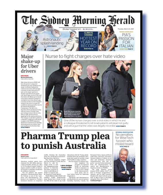 Yes, you BUGgers out there know what we are referring to! The habit by subs at The Sydney-Morning Herald, whenever the paper has a Hardly Normal wraparound in its attempts to survive, to folio the inside fake front cover as page 3.
