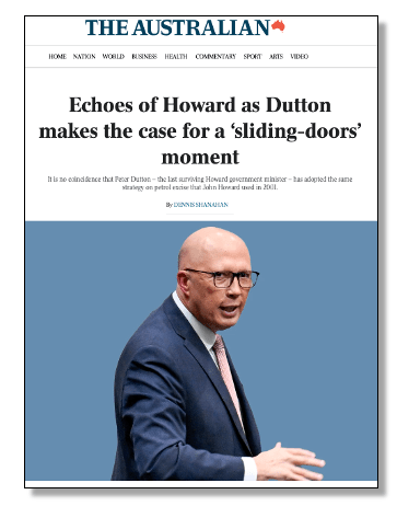 BRISBANE: Efforts by Peter Dutton to emulate his political hero, former long-term Liberal Party prime minister John Howard (below), have come unstuck on just the second day of the federal election campaign.