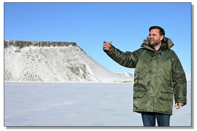 Mr Vance inspected an area in and around a US defence base in Greenland as shown in a photo published by The New York Times (below).