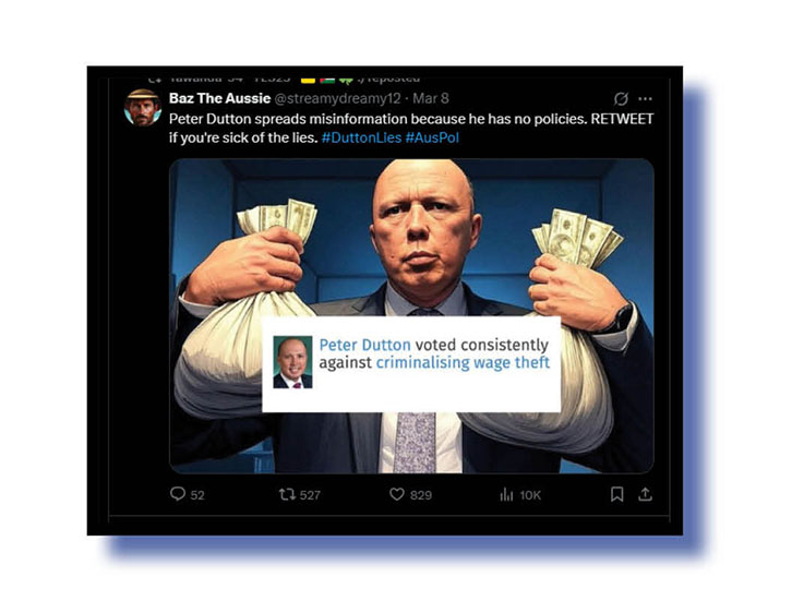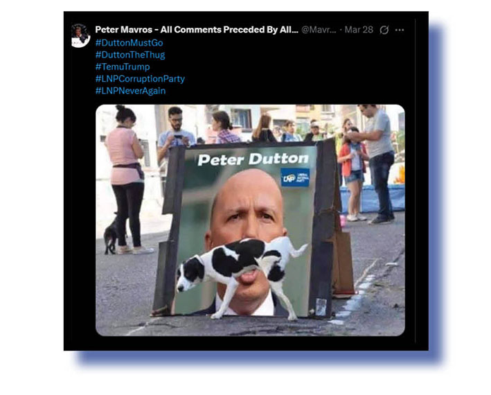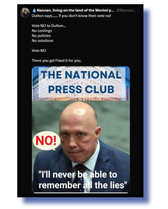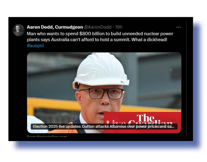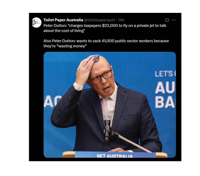 Our judges accept that the meme is staler than the last stubbie that Barnaby Joyce couldn’t finish last night but they still thought it was worth a fresh run given the federal election is now under day. Besides, they also considered it relevant seeing Anthony Albanese was talking yesterday about things being as weak as piss and Peter Dutton replying that Albo was as weak as … water.