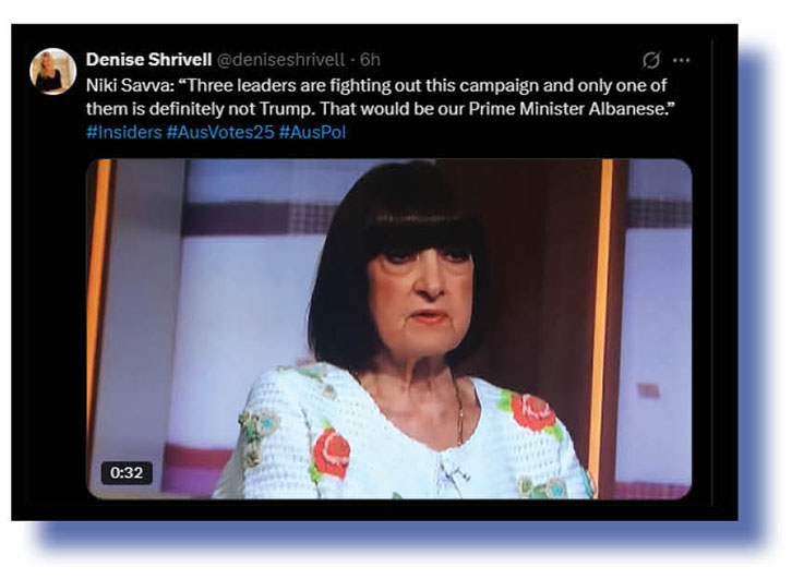 Enough! Now to the federal election campaign and a lot of xcrement plopped into our prize barrel on observations by Niki Savva on the ABC Insiders program, including these offerings squeezed out by Dazza, Denise Shrivell and Lee-Anne Walker.
