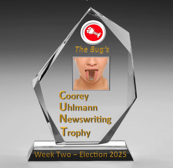 So starting tomorrow (Saturday), we will announce this week’s winner of the Coorey-Uhlmann Newswriting Trophy for Week Two Election 2025. Subsequent winners will be revealed over the next four Saturdays up to polling day!