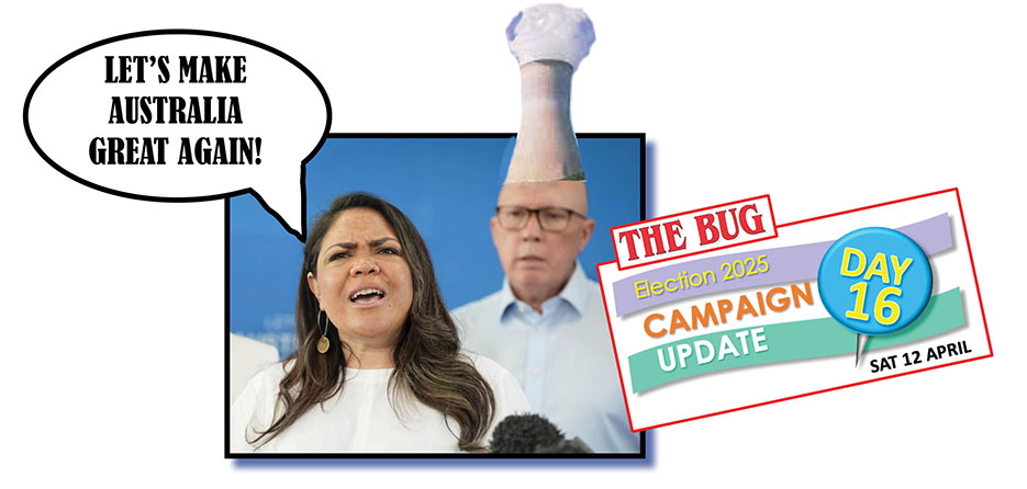 Only Australia’s No1 family newszine The Bug will keep you up-to-speed with each and every day of the campaign though the cutting-edge analysis of our in-house political experts, how the mainstream mediocre is behaving and a close watch on poll trends and betting markets.