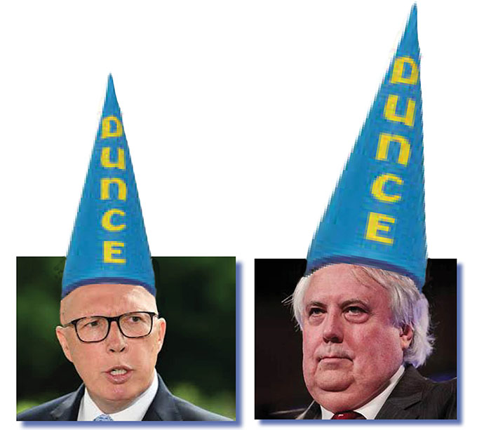 Okay, seeing we’ve drifted into politics, why do Peter Dutton and Clive Palmer have dunce caps on in the image at top?