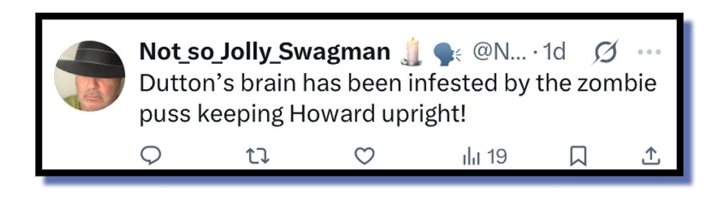 Kenny – who even peppered his review of the debate with descriptions of sound effects as Dutton supposed landed those blows – was way out of step even with some of his fellow Righters at The Oz.