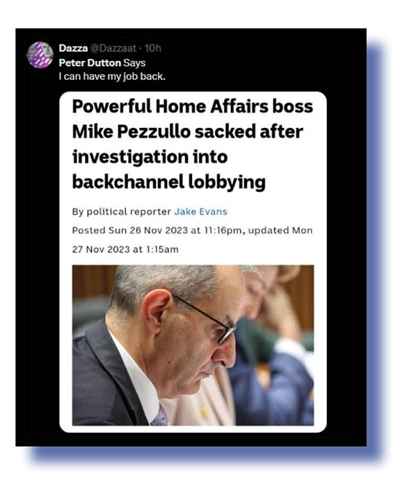 The Bug has not seen any real evidence of this. Rather, if Dutton is trying to do that, he’s making a bad fist of it. And there was no better example of that then his declaration that disgraced public servant and former Home Affairs head honcho Mike Pezzullo would have a key role in “any government I lead”.