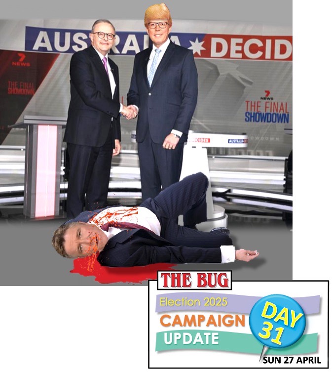 Only four and a bit full days to go until we all know who will ruin our… we mean rule our nation for the next three years. Until the last vote is cast and counted you can rely on your No.1 family newszine The Bug to keep you up to date on what’s been happening on the hustings.
