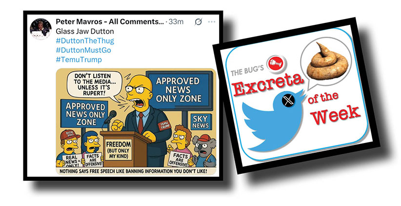No-one out there in BUGland should be surprised that this first look at our Xcrements-of-the-Week will devote itself entirely to Peter Dutton’s declaration that a sizable share of our nation’s mainstream mediocre is “hate media” hellbent on bringing him down.