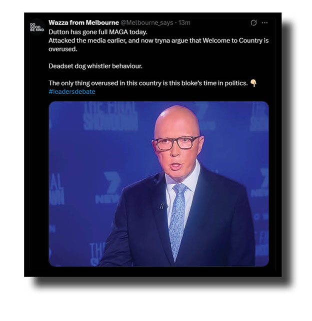 Yesterday, this column looked at just one example of Dutton’s total inability to stop presenting himself as a divisive, racist, culture-war vulture by going all lamestream media on a fair swag of our mainstream mediocre. (sound very, very, familiar?)
