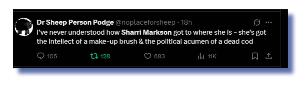 Clever yet cruel and cutting words will always curry favour with The Bug‘s judges of its many awards so today we honour Dr Sheep Person Podge!