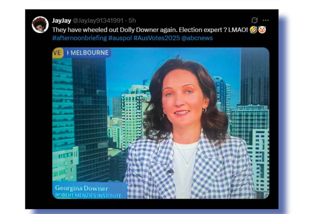jen l w-w, Jay Jay, Phillip Riley and our dear friends, the witches, also referenced other women, although we’re not sure their advice/opinions are going to be of any great comfort or help to this nation’s favourite black white supremacist, Shooter “I rorta know!” McKenzie and some nobody called Lady Downer who, for no reason any decent or logical person can fathom, keeps getting invited onto media platforms to say stuff that’s not worth listening to.