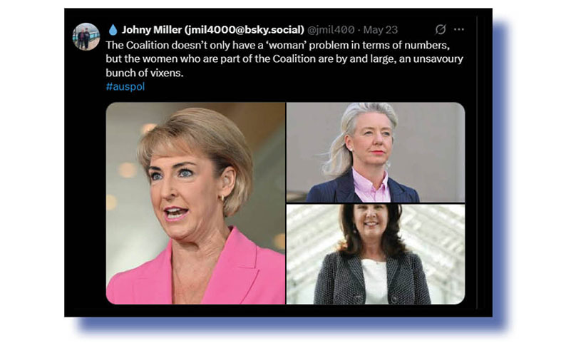 Addressing the women’s problem the dying Liberal Party appears incapable of fixing were Johny Miller and Sassy Leo…