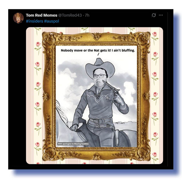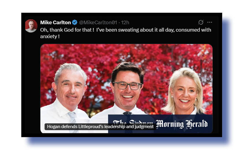 Xcreting on the whole bizarre short-term split were Paula and Mike Carlton, the latter dripping with commendable sarcasm as he unfretted over possible Nationals leadership mutterings.