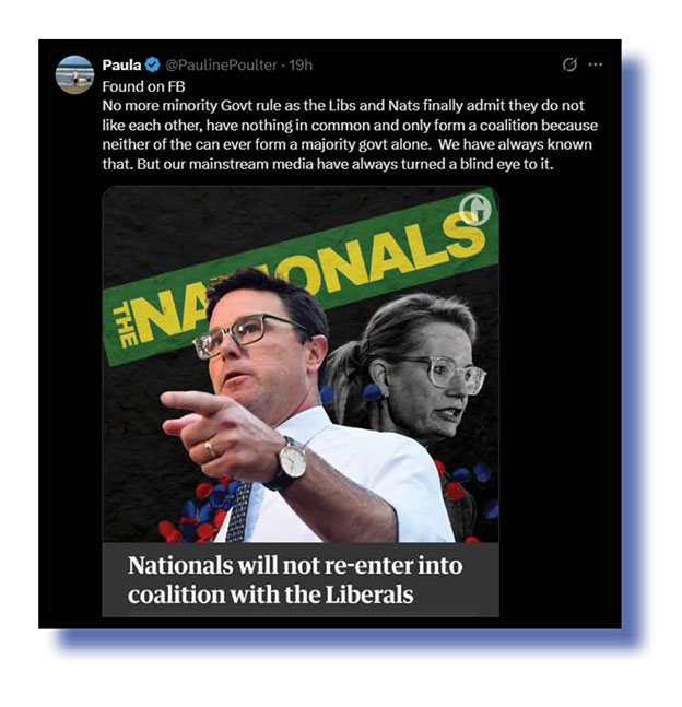 This column will focus on the quickie divorce between the Coalition partners and the rush to kiss and make up the moment Nationals MPs realised the extent of the salary and staff loses they’d suffer if the Libs became the sole Opposition.