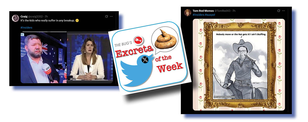 Xcreting on the whole bizarre short-term split were Paula and Mike Carlton, the latter dripping with commendable sarcasm as he unfretted over possible Nationals leadership mutterings.