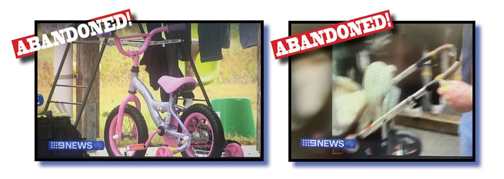 In the 6pm bulletin on the tragic stabbing murder of the three-year-old lass near Bundaberg, reporter Pat Heagney described the crime scene as one where “tiny clothes still hung on the line and beside an abandoned pink bike”.