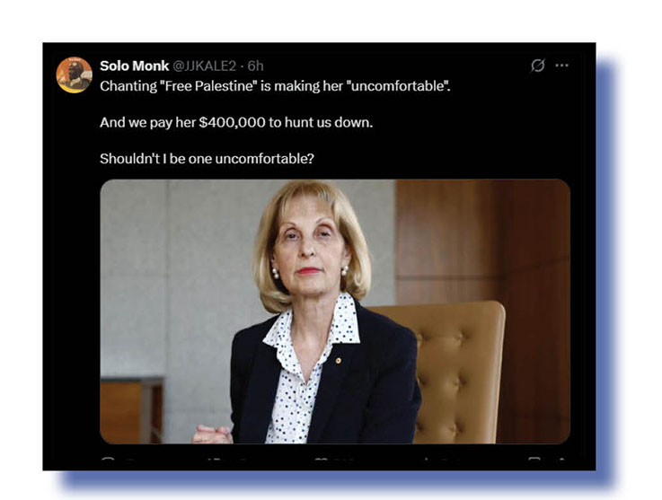 … while Solo Monk dumped on the head of Australia’s antisemitism envoy, Jillian Segal. The Bug thinks, and reading between the lines suspects Solo Monk does to, that people like Segal who automatically scream “anti-semitism!” at anyone critical of the atrocities being inflicted by Israel on Palestinians in Gaza and the West Bank are just bloody disgusting and in Segal’s case should not be on a government payroll ever!