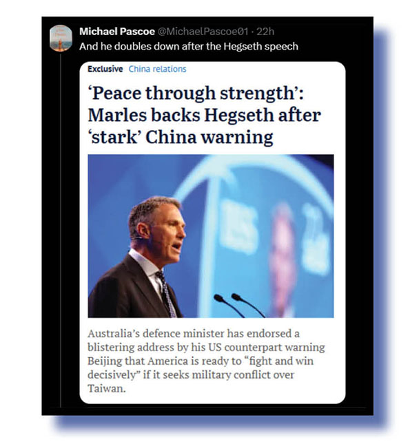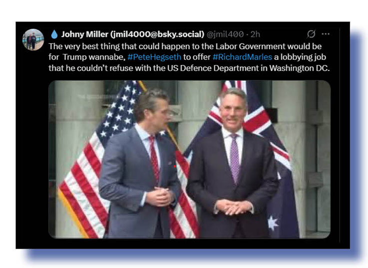 We wish Marles a speedy recovery if he can ever be extracted from US Secretary of Defence Hegseth’s arse.