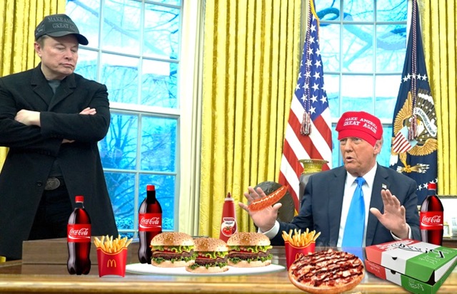 It’s set in the White House which is shared by Trump and Musk, both men are divorced (several times), and one is definitely a slob while the other is definitely an on-the-spectrum obsessive. (main picture)