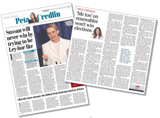 Credlin’s Murdoch muckhole mastery in arguing on their behalf and business interests that the Liberals need to move further to the right will surely see the Liberals’ currently connected life-support equipment switched off sooner or later.